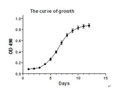 活细胞线粒体中的琥珀酸脱氢酶能使外源性MTT还原为水不溶性的蓝紫色结晶甲臜(Formazan)并沉积在细胞中,而死细胞无此功能。二甲基亚砜(DMSO)能溶解细胞中的甲臜,用酶联免疫检测仪在490nm波长处测定其光吸收值,可间接反映活细胞数量。在一定细胞数范围内,MTT结晶形成的量与细胞数成正比。该方法已广泛用于一些生物活性因子的活性检测、大规模的抗肿瘤药物筛选、细胞毒性试验以及肿瘤放射敏感性测定等。它的特点是灵敏度高。