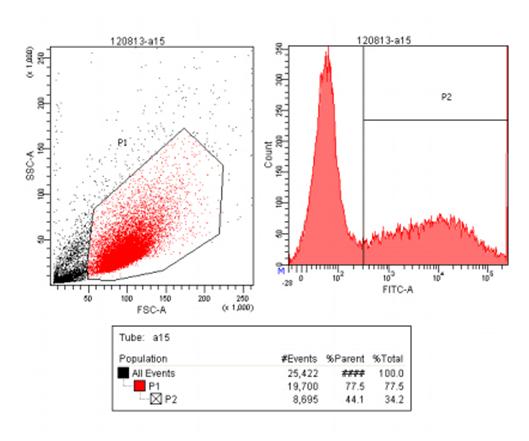 4. 弃上清后用500ul PBS悬浮细胞沉淀。之后分别加入抗体,4℃条件下孵育30min用流式分选细胞仪进行流式分析