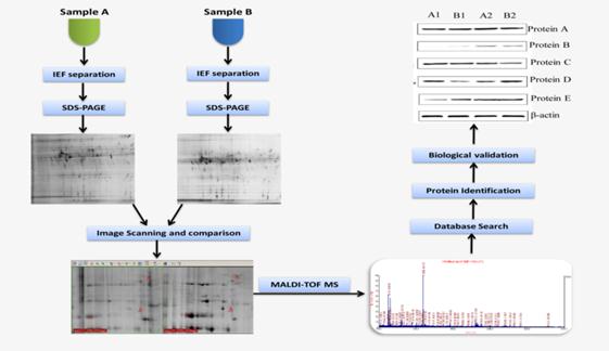2D-Gel结合MALDI-TOF MS,主要用于差异蛋白质组分析。