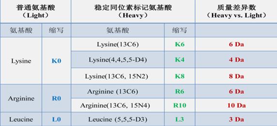 SILAC氨基酸对照表: